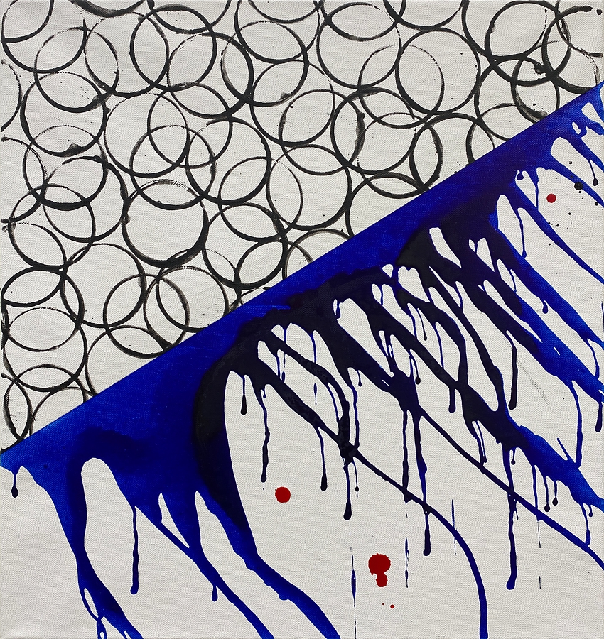 Ölfarbe, Öl, Zement und Permanentmarker auf Leinen